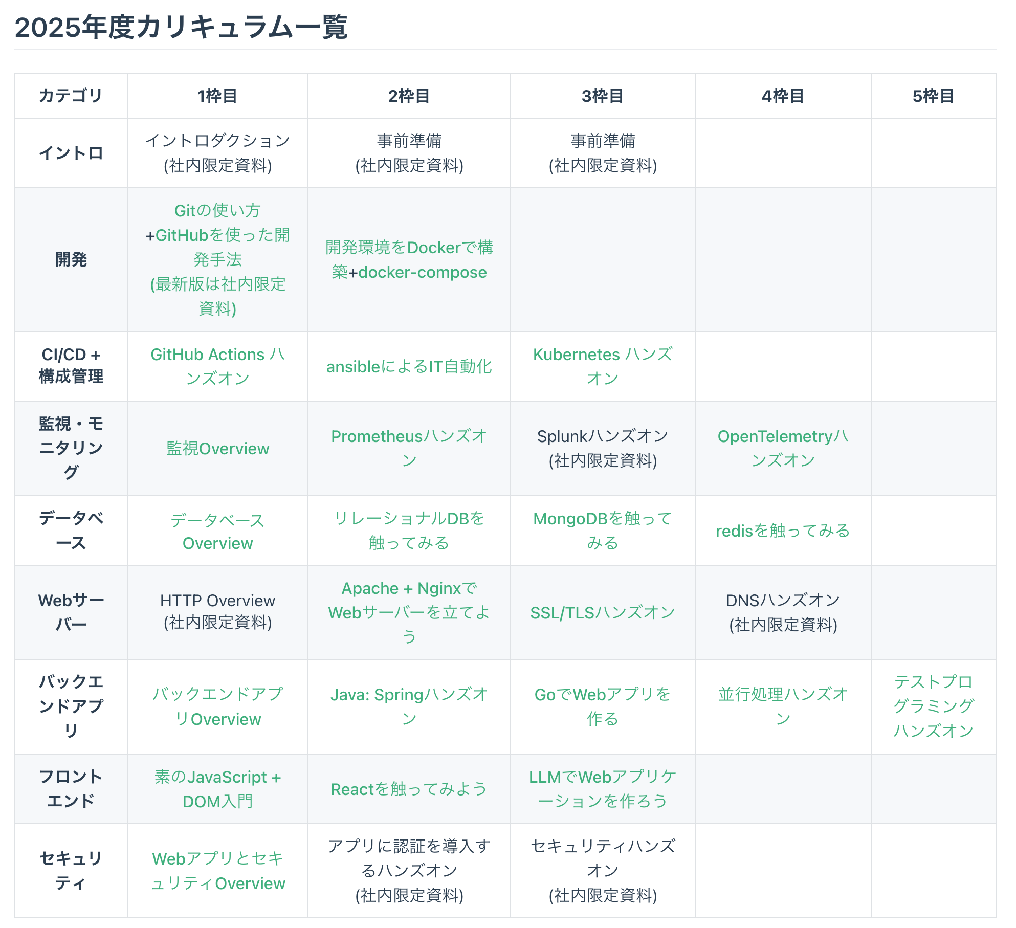2025年度は新しく「OpenTelemetry ハンズオン」と「LLMでWebアプリケーションを作ろう」が追加されつつ、「セキュリティハンズオン(資料非公開)」が数年ぶりに復活しました。