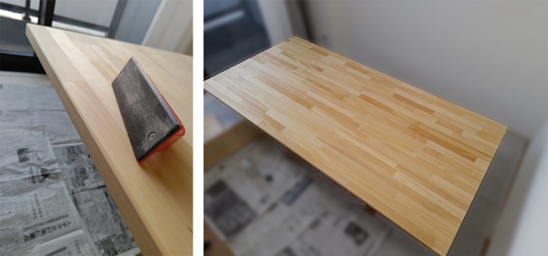 スタンディングデスクの天板に関しては近所のホームセンターで集成材を買いました。