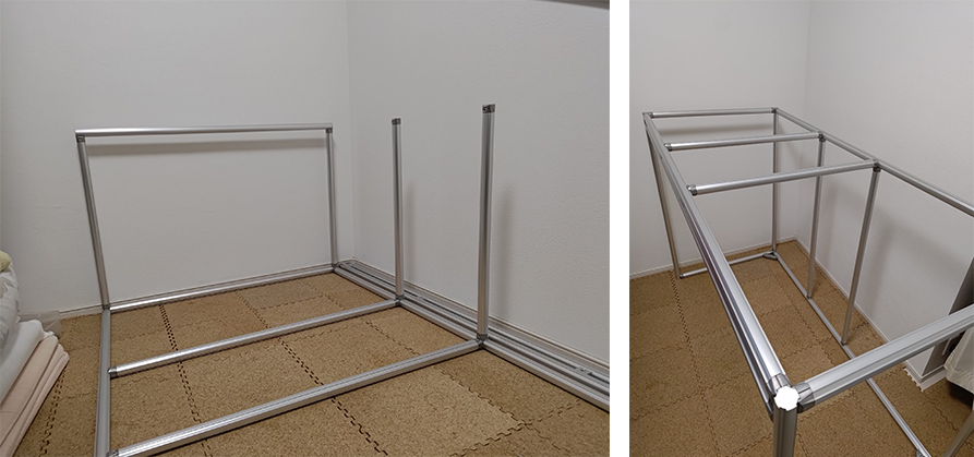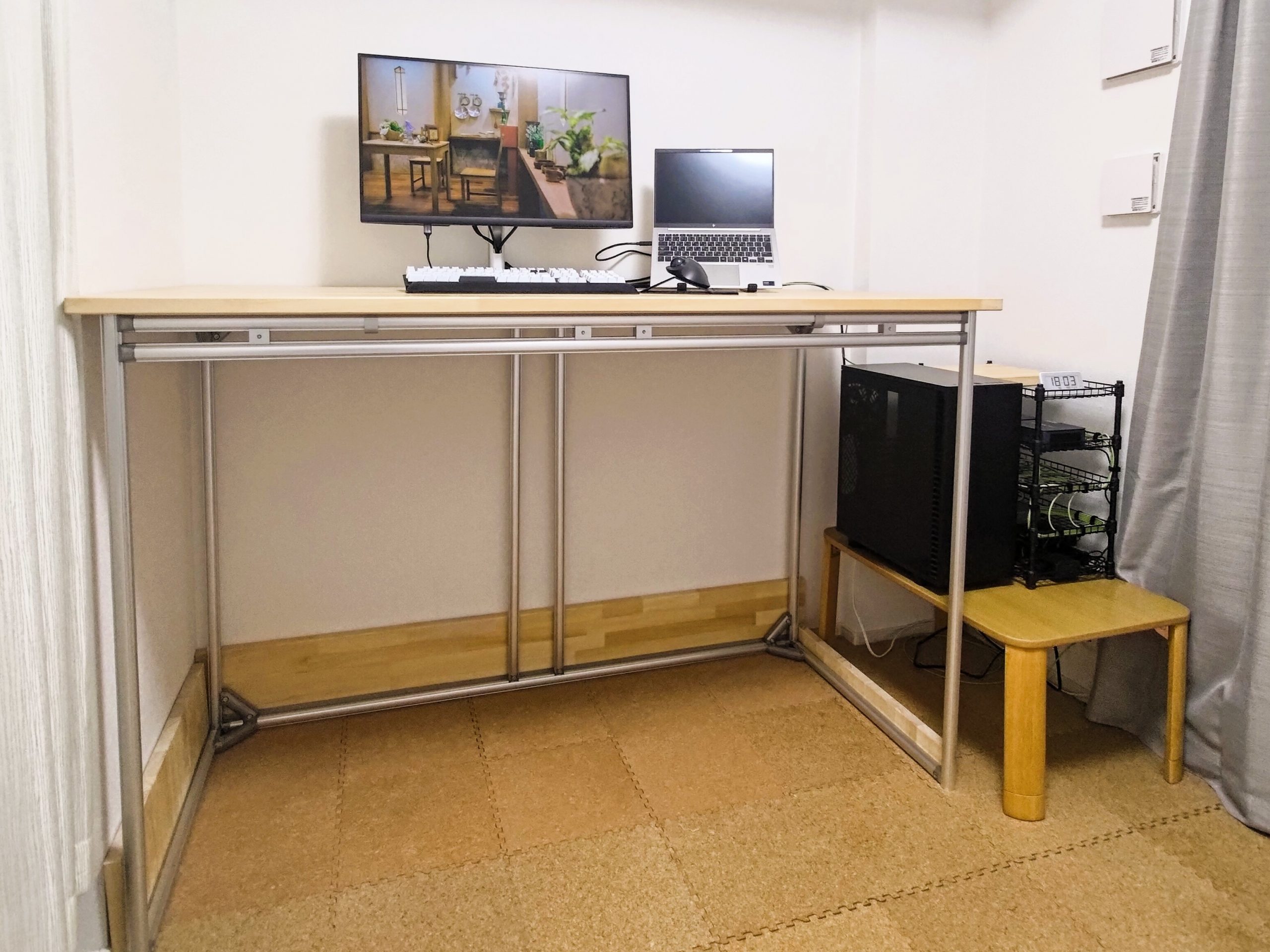 スタンディングデスクの脚に関しては解体が容易なアルミフレームを用いて作成しました。