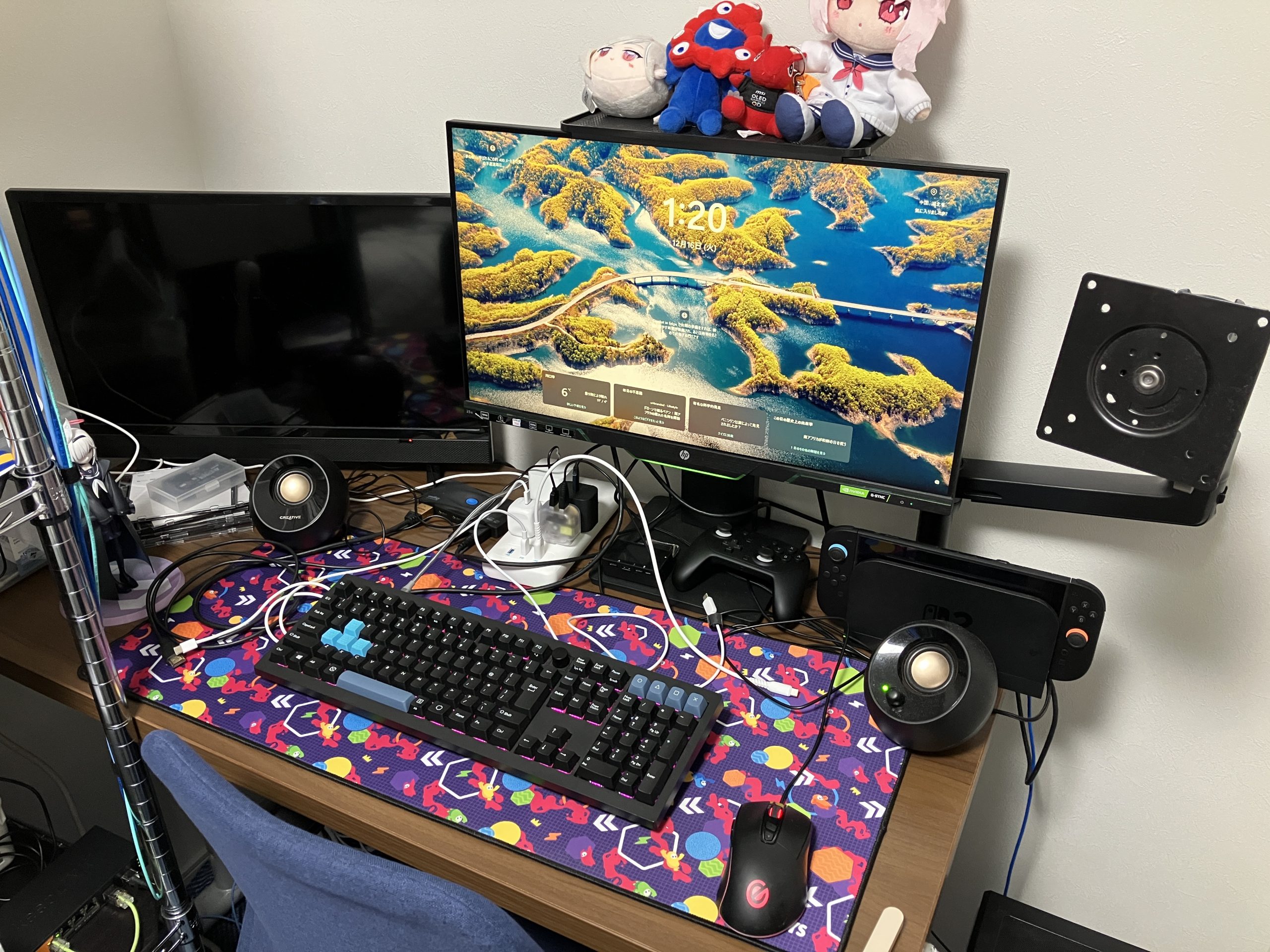 ここもKVMスイッチなどを使って簡単に出来るようにしたいのですが、個人的に「あまりリモートワーク向いてないな」、となっているため手付かずとなっています。