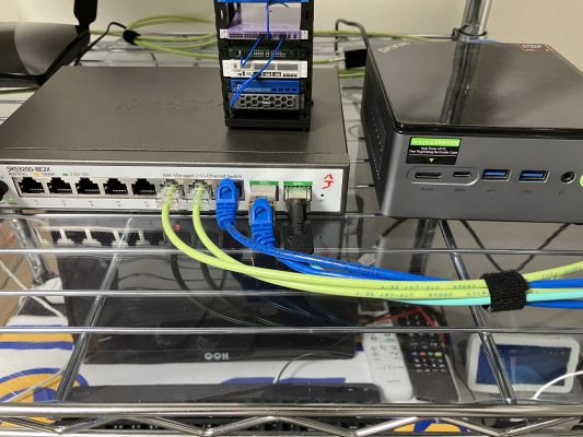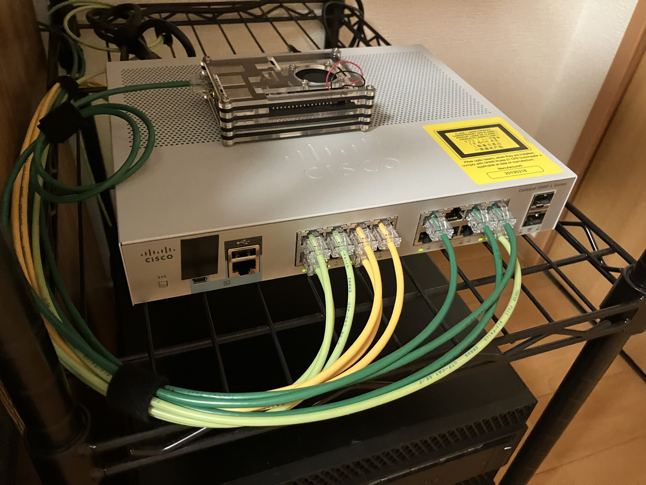• 写真にはないですが、ラズパイもあり、PXEブート用のサーバにしています。ファンがうるさいので玄関に隔離しています。
