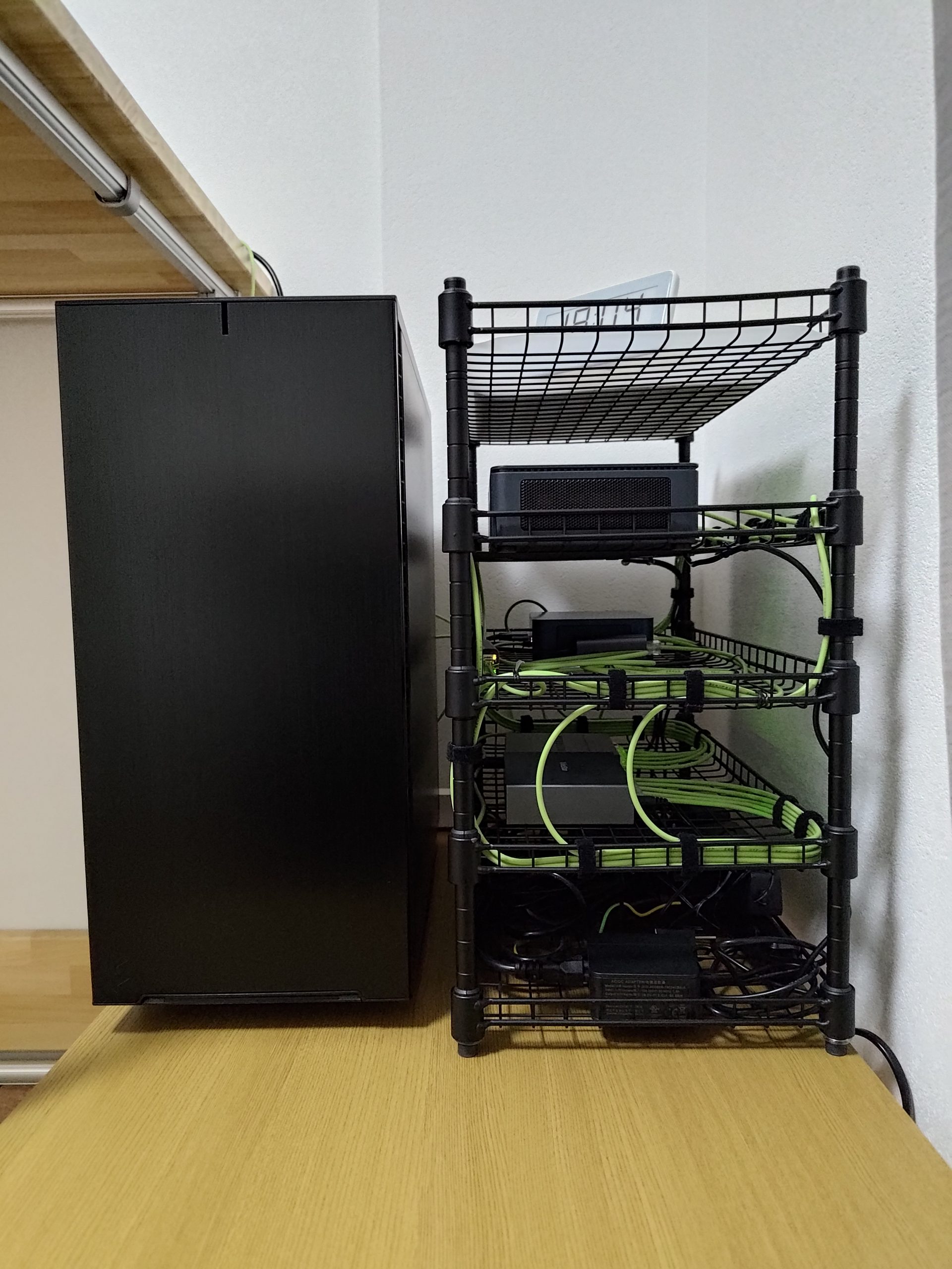 ミドルタワーPCと同程度の大きさのジョイントラックに収まる範囲のHomelabを構築しています。