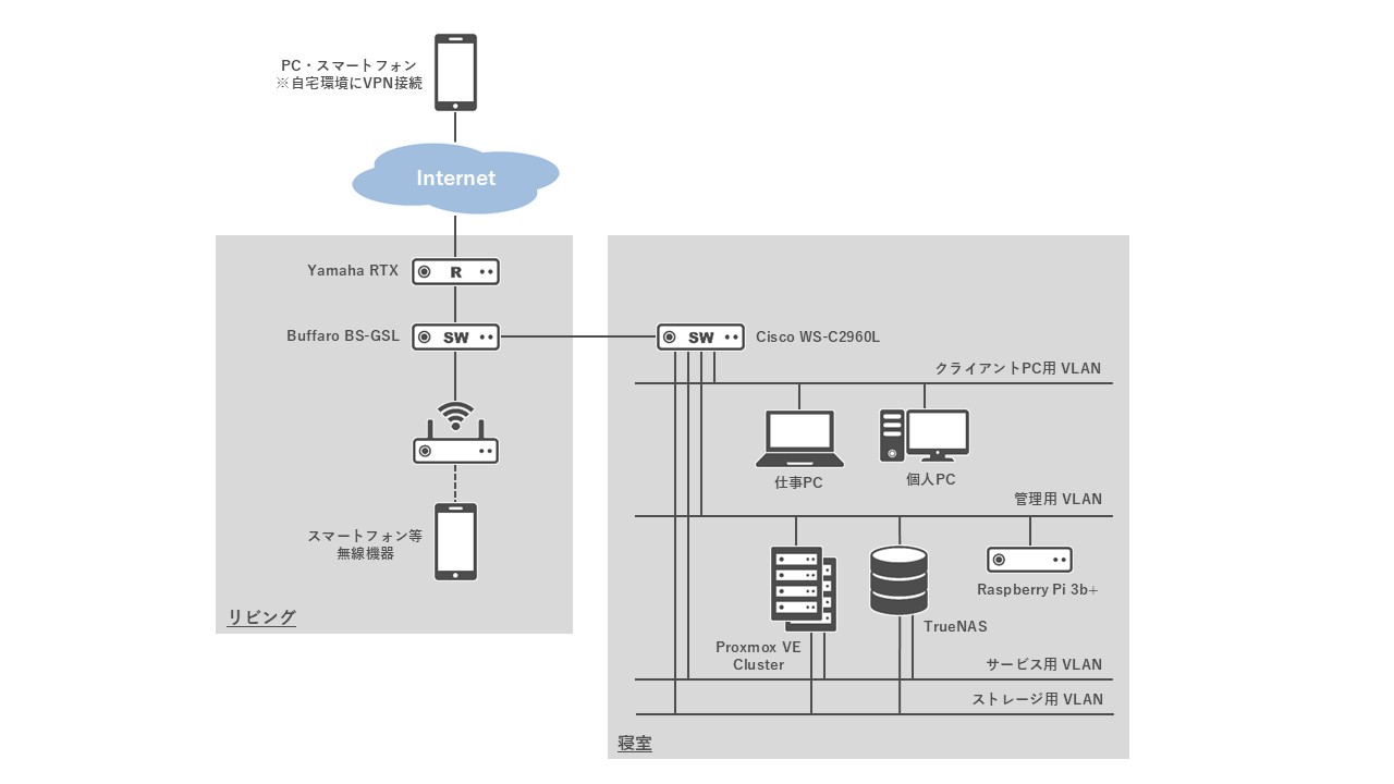 他の方と比べると全然一般のご家庭なので、家に沢山サーバやNW機器がある人もいれば自分みたいな人もいる会社だよ、と思って頂ければ幸いです。