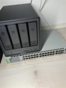 このNASは10GbEなRJ45ポートを搭載していて、L3スイッチにも10GbEポートがあるので、10G対応NICをPCに積んで高速転送とかもしたいな~~という気持ちです。