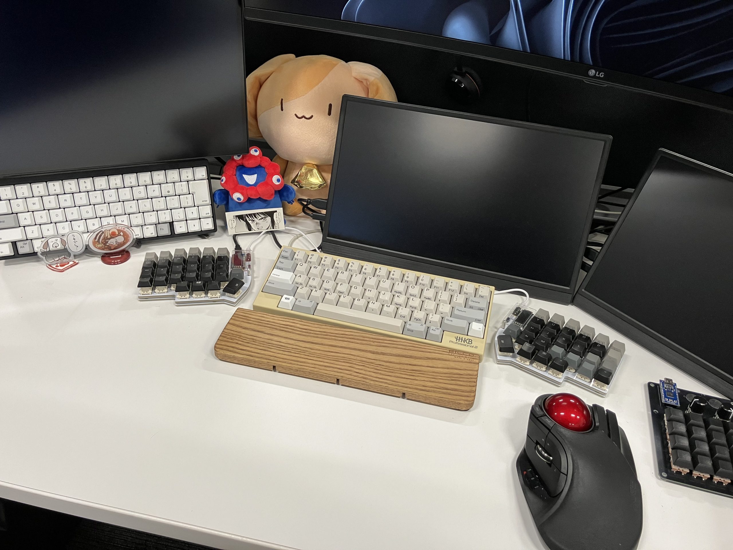 また、写ってはいませんがHHKB Lite 2がサイドキャビネットにあり、職場デスクには計3台のHHKBがあります。