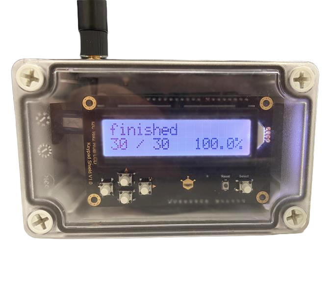 電源に接続すると自動で測定が始まり、測定が完了すると測定デバイス上に以下のような表示がされます。