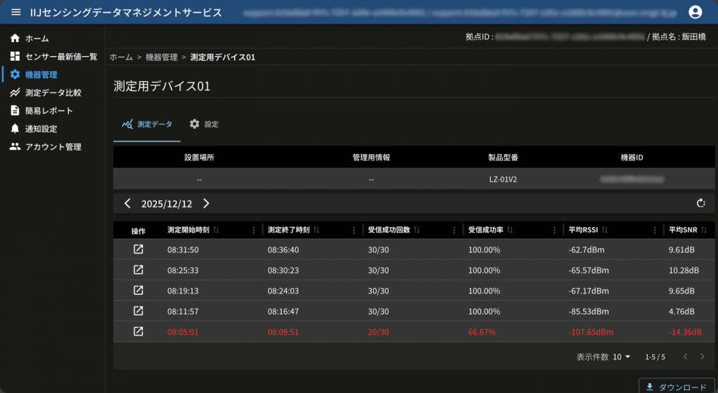 今回は、SDMSを利用して実際に社内のオフィスフロアに温湿度のモニタリング環境を構築した際、事前に行った電波調査について紹介しました。 今回の結果からも分かるように悪条件が重なってしまうと、数km先まで届くはずのLoRa®であっても100m圏内でも通信が安定しない場合があります。 LoRa®に限らず、無線を利用した通信環境を構築する際は、事前調査が重要になってきます。 SDMSでは、皆さんをデバイス導入前の事前調査の段階から支援する機能を提供しています。実際に利用現場で調査から行ってみたい場合は、ぜひお気軽にお問い合わせください(✉:sdms-info@iij.ad.jp)。