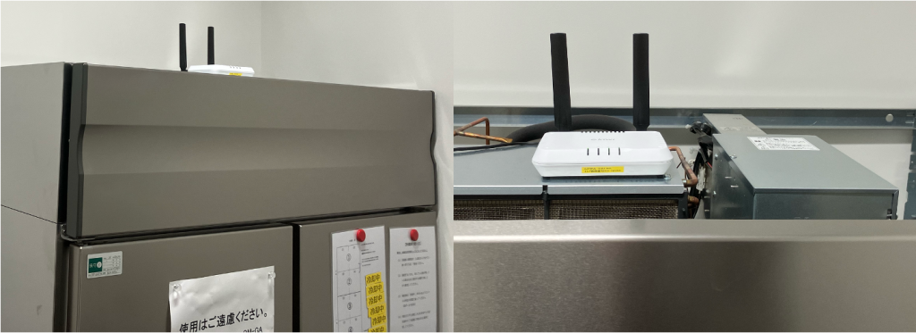 ゲートウェイは来客用の飲料を保管している業務用冷蔵庫の上に設置しました。