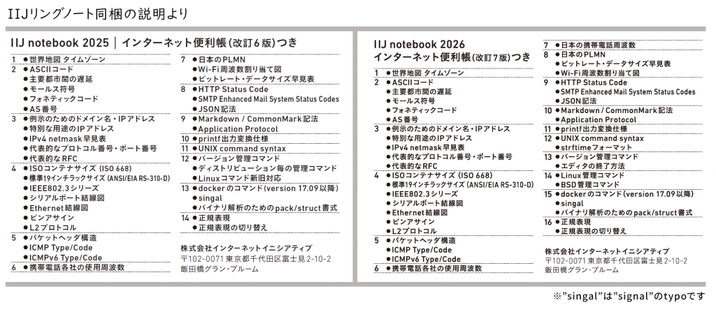IIJリングノート 2026 Errata (正誤表)