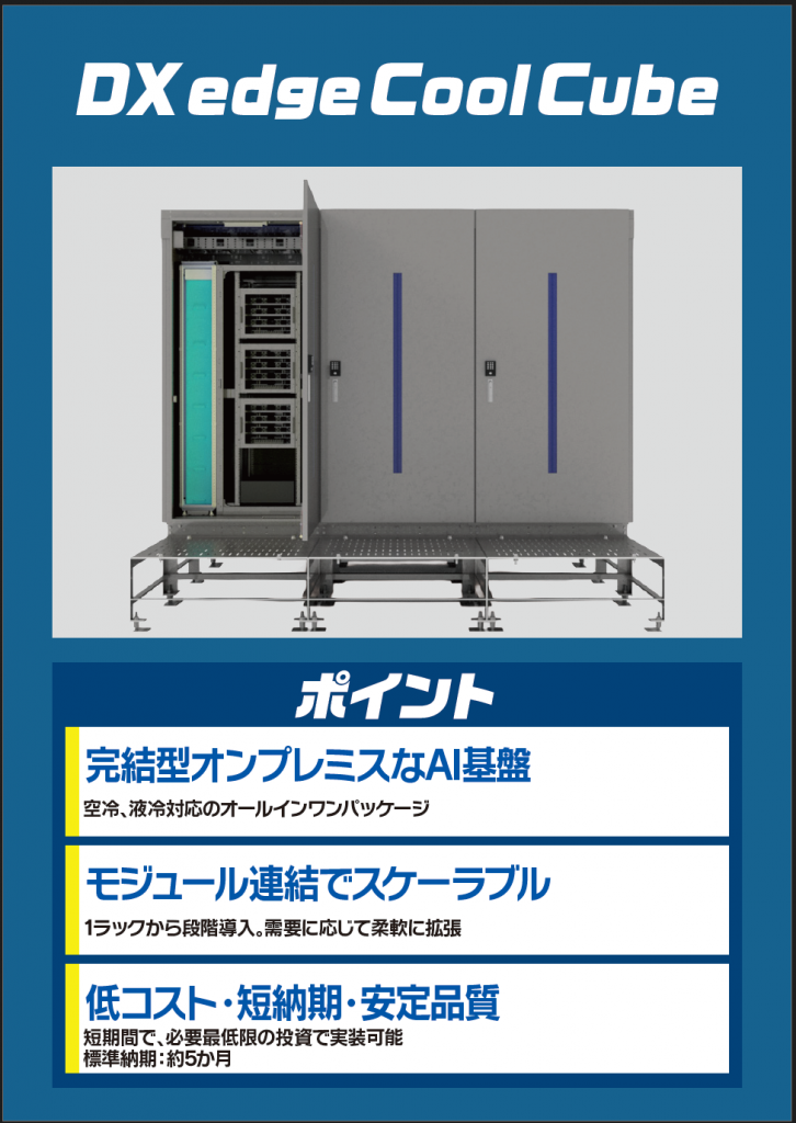「DX edge Cool Cube」は、次のような特徴を持つモジュール型のAIインフラです。