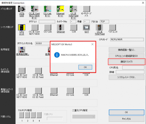 接続に成功しましたと表示されました。これで、保守用PCからPLCへのアクセスが成功したことを確認できました。