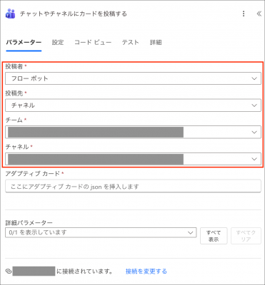 「チャットやチャネルにカードを投稿する」アクションの設定