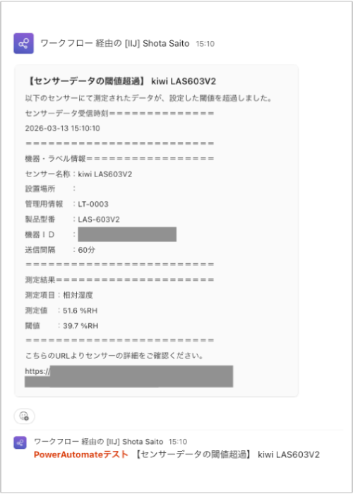 【Power Automate】センシングデータのイベントをTeamsに通知する(応用編)
